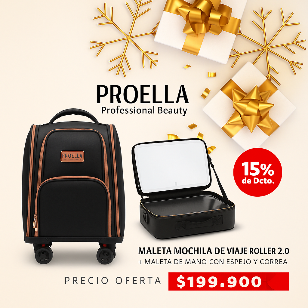 Set Maleta Roller 2.0 + Maleta de Mano con Espejo y Luz